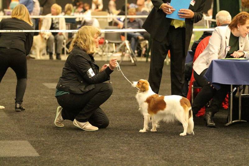 Ze showd heel mooi en ook prettig en stabiel in gedrag , niet gauw last zenuwen vrij stabiel in gedrag ,dat zijn vaak de bijtertjes , Zulk gedrag wordt door de keurmeesters show ook niet getollereerd ,maar is in de teven klasse veel en grote concurentie op show,s ,met de Kooikerclubmatch sta je met 21 kooikers open klasse Waar Lynn vorig jaar 2016 , 5 e van werdt . We zijn na we Yede kwijt raakten niet veel meer op shows geweest ,moest allemaal weer een beetje slijten verdriet gemis van onze Yede . We weten zelf wel dat Lynn is goed van bouw en type is ,goed gehoekt voor en achter ,maar voor mij is goed gedrag in de ring voldoende . Als we een beetje meer geshowd hadden kon ze misschien vast wel jeugdkampioen kunnen worden ,maar vinden wij niet zo erg noodzakelijk. We hebben onze reuen mooie prestatie, s gehaald shows mooie tijden meegemaakt die 10 jaar en met succes , vele mooie resultaten behaald , Als kritisch oog keurmeesters zijn de beoordelingen wisselend ,scooren bij manlijke keurmeester beter, Lynn heeft nu vijf mooie 7 Zeer goeds en 7 Uitmuntends ,eigenlijk is een Z.G . zeer goed al voldoende fokregelement . Maar nu de laatste clubmatch werdt ze reserve beste teef met een Uitmuntend 1 van de 20 ingeschreven teven openklasse ,won daar bij nog van de andere klasse eersten op het hondje uit Frankrijk na Jeugdklasse haald daarmee twee reserve,s ook een vorige Ijsselshow waar van 4 reserve,s weer een hele Nederlands kampioenschap maakt .
