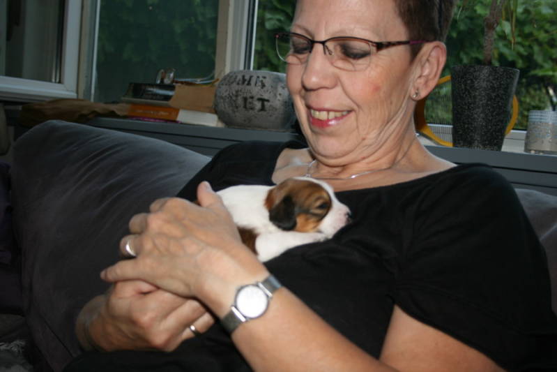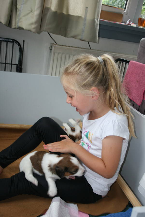 Wij fokken eens in de anderhalf à twee jaar met hart en hoofd een nestje,waar wij ze goed socialiseren hier samen met onze kleindochter Kyra en kleinzoon Danny