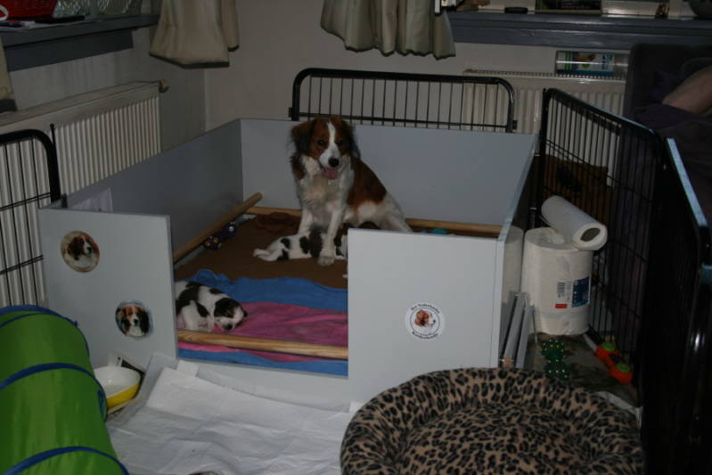 In de nacht van 15 op 16 juli zijn de pupjes Lynn Manusia,s Indra Rosi e en Danny Imandra van Kooikerbeis geboren ,de hele zondag vanaf 10 uur ochtends begon ze onrustig te worden graven ,plek zoeken ,Dierenarst Veemarkt Sneek ingelicht het begonnen was ,Had vrijdag ook al gebeld in v.b.m Weekend ,maar ze hadden Sneek dienst ,Trof Karin de Boer aan de lijn ,die mij gerust stelde bevalling eerste keer wel een etmaal kon duren ,Toen we s,nachts half 4 geplast hadden buiten ,zag ik de eerste pers wee we binnen weer op ons plekje waren ,Ze wilde de pups liever niet in de werpkist ,osteopatische kussen met kraam matrasje werdt ook afgekeurd ,Dus een Dekbed over de bank in hoekje ,kraammatrasjes er over heen doorlekken ,kussens er uit omdat ander te ondiep was ,En als eerste geborene was Rosie Sieuwer reu van 260 gr en de tweede teef Rosi Siwarda ,de ligtste teef 222 gr geboorte maar nu inmiddels 3 dagen 2.90 gr Sunny 232 gr voorbij gestreeft 271 gr Nog altijd is Sjors de zwaarste 234 gr ,na drie dagen 309 gram Sita mag er ook zijn 265 gr geboort nu na drie dagen 308 gram ,dat voor een teef